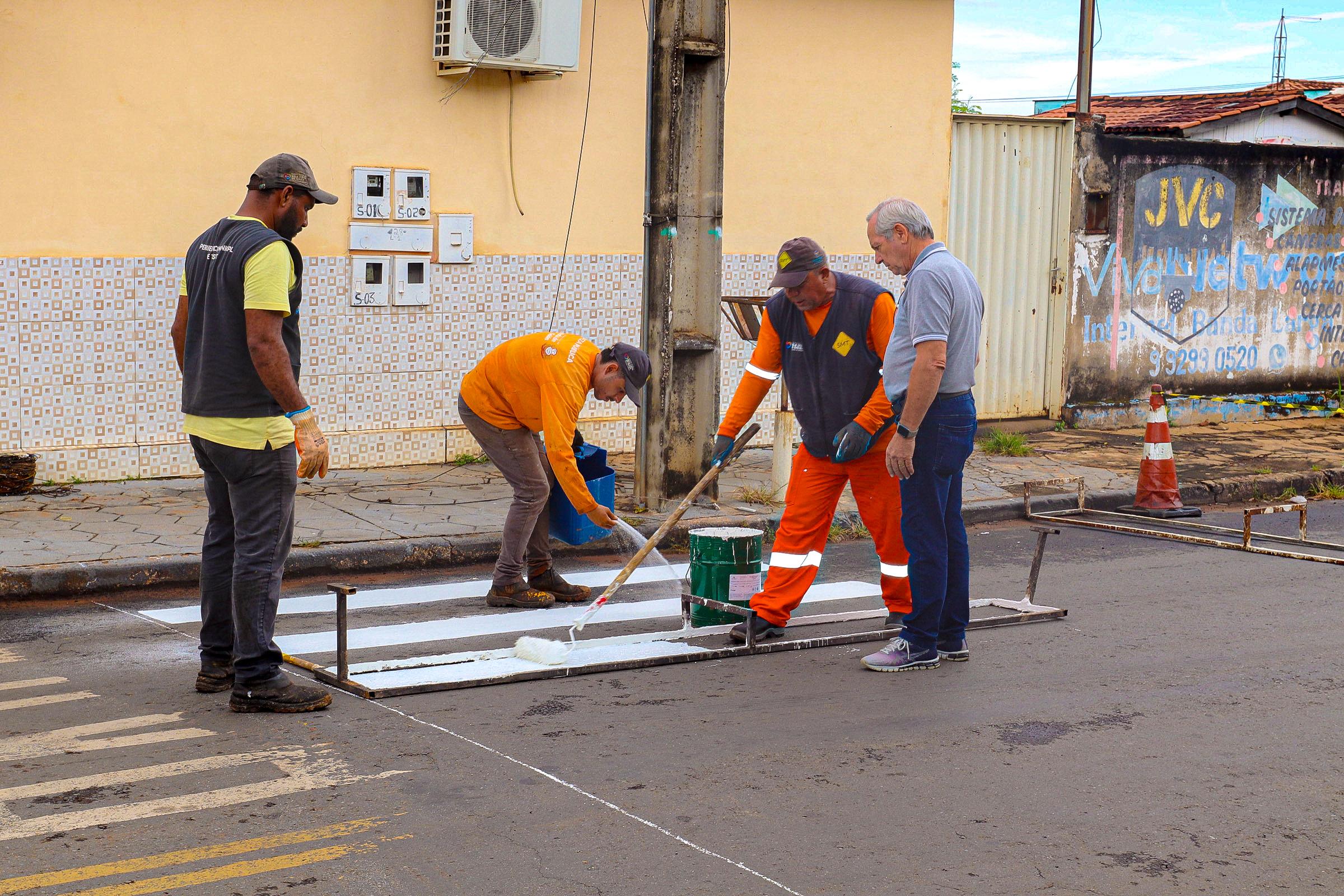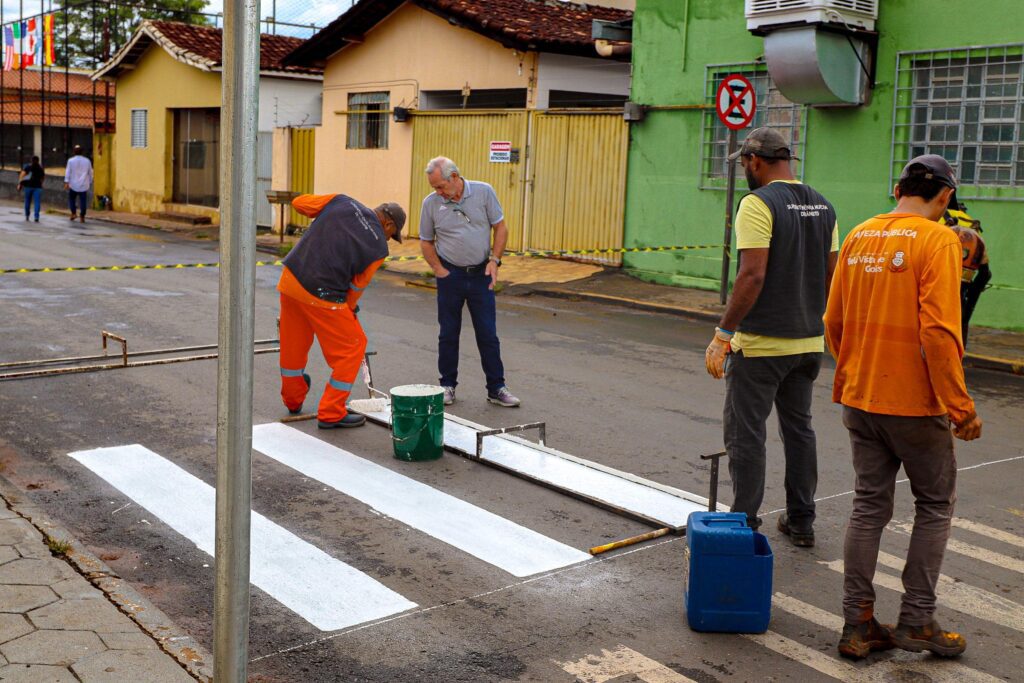 Hoje, pela madrugada, mesmo com a chuva, a Superintendência Municipal de Trânsito iniciou o processo de sinalização. Faixas de pedestres e de advertência foram pintadas nas ruas do cruzamento da Avenida Senador Pedro Ludovico Teixeira com a Rua Vereador Antônio de Oliveira, no centro.